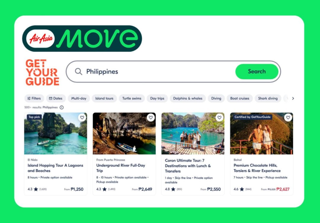 MANILA – AirAsia MOVE (MOVE) has expanded its offerings to include ‘Attractions’ on its platform via a strategic partnership with GetYourGuide, enabling everyone to search and book travel experiences, activities and tour packages and integrate their travel booking experience seamlessly within the app.