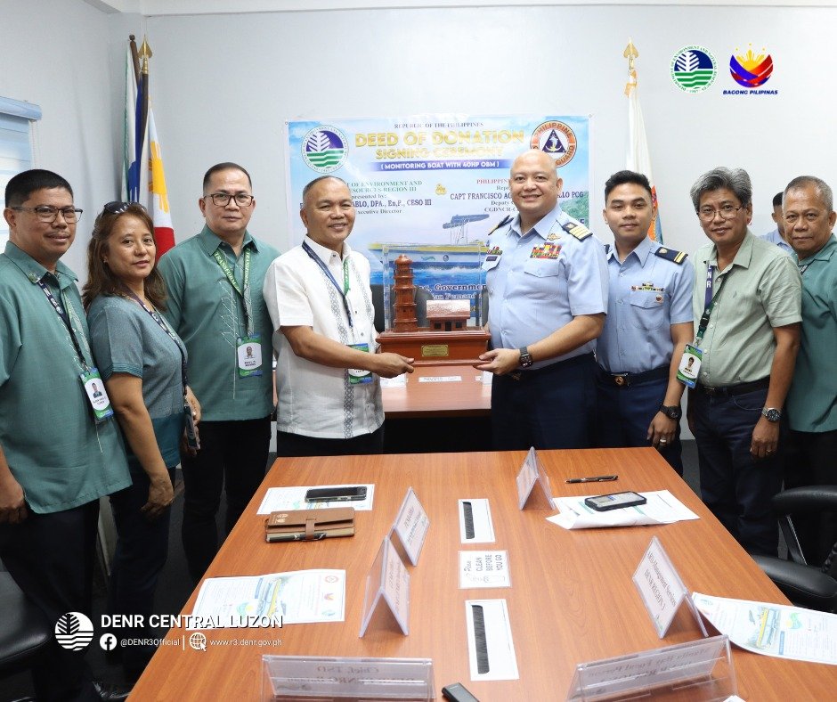 The Department of Environment and Natural Resources (DENR) has donated a monitoring boat and oil spill containment equipment to the Philippine Coast Guard (PCG) to enhance coastal surveillance and emergency response capabilities in Bataan.