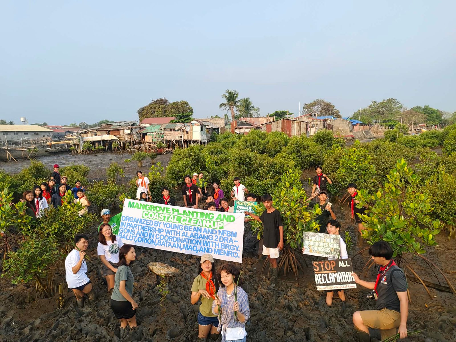 ORION, BATAAN — In celebration of Global Earth Month, the Nuclear-Free Bataan Movement (NFBM), together with the Young Bataeños for Environmental Advocacy Network (YoungBEAN), officially launched a series of environmental initiatives with a mangrove planting activity and sanctuary cleanup in Barangay Balut, Orion.