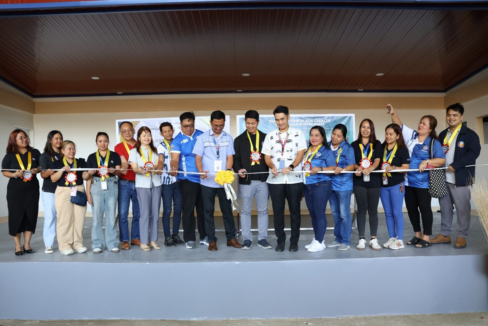 Mayor Atty. Rolen Paulino Jr. together with Barangay New Cabalan officials and MSK Group Works Inc. representatives, leads the ribbon-cutting ceremony for the newly constructed stage at New Cabalan City High School (NCSHS).