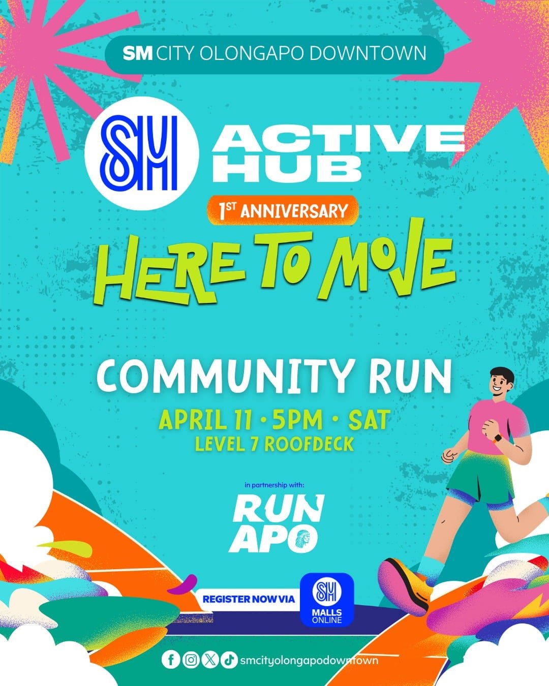 Move with the Community at SM City Olongapo Downtown At SM City Olongapo Downtown, fitness enthusiasts and first-time runners alike are invited to join the Community Run on Saturday, April 11, at 5:00 PM at the roofdeck. Led by Run Apo Club, the run is designed to be fun, inclusive, and pressure-free. Participants can run at their own pace, meet fellow runners, and enjoy simple cooldown and recovery activities afterward—perfect for anyone looking to get moving in a relaxed, supportive environment.